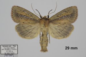 (dissolutus aufgelöst, weil die schwarzen Punkte, welche bei der vorigen Art (Archanara neurica) in der Nierenmakel stehen, hier fehlen, aufgelöst sind).