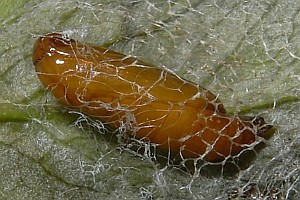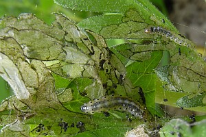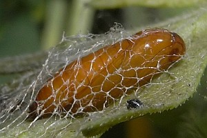 Die Raupen leben gesellig unter einem lockeren Gespinstdach an der Blattunterseite verschiedener Apiaceae wie Engelwurz (Angelica sylvestris), Bärenklau (Heracleum sphondylium), Kälberkropf (Chaerophyllum sp.), Giersch (Aegopodium podagraria) u. a. Die Verpuppung erfolgt meistens in der Bodenstreu oder seltener auf der Blattunterseite unter einem lockeren Gespinstnetz. (Rudolf Bryner, Heidrun Melzer)