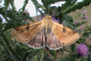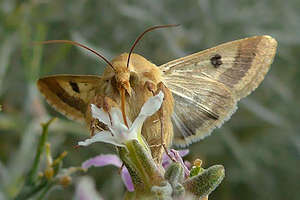 - Simoglou, K. B., Anastadiades, A. I., Baixeras, J. & E. Roditakis (2015): First report of the bordered straw, Heliothis peltigera, on sunflower in Greece. — Entomologica Hellenica 24: 31-36 [PDF auf entsoc.gr].