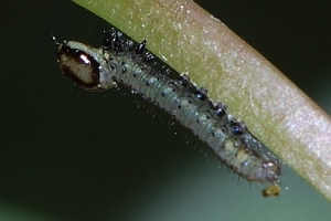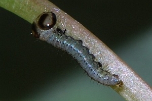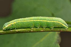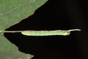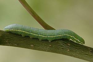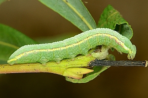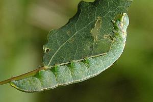 1: am sonnenexponierten Waldsaum in der Trockenaue der Rheininsel wurde eine ausgewachsene Raupe in Augenhöhe von Weide (Salix spec.) geklopft: Deutschland, Baden-Württemberg, Schönau Haidflüh, 750 m, 12. September 2010 (Foto: Florian Nantscheff)Forum