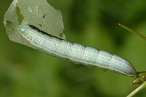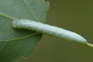 1-2: vorletztes Stadium in Häutungsruhe, Deutschland, Brandenburg, Hennigsdorf bei Berlin, Havelwiesen, Waldlichtung, am Feuchtgebiet, Raupe an Pappel, 38 m, 10. August 2013 (cult., det. & Fotos: Martin Semisch)Forum
