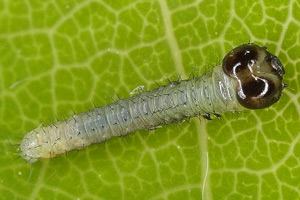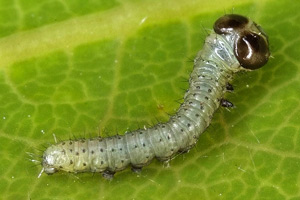 1: Fraßbild der Jungraupe, Deutschland, Bayern, Maßbach (Foto: Oskar Jungklaus), det. Oskar Jungklaus