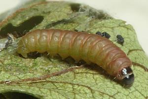 Die oben gezeigten Raupenfunde der Lepiforums-Mitarbeiter betreffen Weißdorn (Crataegus sp.), Eberesche (Sorbus aucuparia), Zwergmispel (Cotoneaster sp.) Garten- und Wild-Birne (Pyrus communis, Pyrus pyraster).