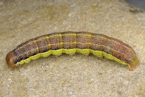 9-10: vorletztes Stadium, 25 mm: Deutschland, Niedersachsen, Landkreis Hildesheim, Sibbesse, "Groß Rippelfeld" (Muschelkalk-Abhang nördlich von Sibbesse), ca. 210 m, trockene Fruchtstände von Pentanema conyzae eingetragen am 27. April 2024, Raupen geschlüpft ab 30. April 2024, Zuchtfotos am 26. Mai 2024 (det. durch Weiterzucht, cult. & fot.: Tina Schulz)Forum