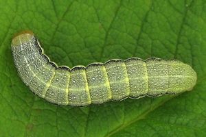 14: L1 und L2: Deutschland, Niedersachsen, Landkreis Hildesheim, Sibbesse, "Groß Rippelfeld" (Muschelkalk-Abhang nördlich von Sibbesse), ca. 210 m, trockene Fruchtstände von Pentanema conyzae eingetragen am 27. April 2024, Raupen geschlüpft ab 30. April 2024, Zuchtfotos am 10. Mai 2024 (det. durch Weiterzucht, cult. & fot.: Tina Schulz)Forum