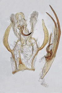 Gregersen & Karsholt (2022: 145) jedenfalls nehmen die Angaben von Sorhagen (1902) ernst und ergänzen: "The larva lives under moss and is difficult to find (Sorhagen op. cit.); bred in July from dead apple branches (Stange 1899: 31). The larva was recently found in the Netherlands, feeding below the lichen Parmotrema perlatum growing on a thick branch of Quercus (Muus in litt.)."
