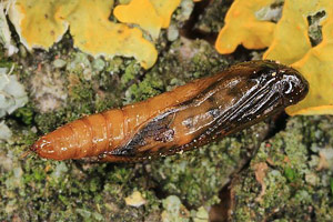 Es spricht also alles dafür, dass die Raupe Flechten (nicht Moose !) auf Holz frisst. Ob das mehrere Arten sind, ist noch ungeklärt. Und theoretisch könnten die Flechten auch nur als Versteck dienen und die Raupen sich doch von der Borke / Rinde des Holzes oder darin siedelnden Pilzhyphen darunter ernähren.