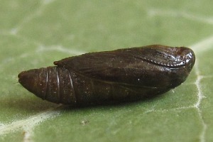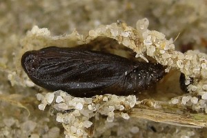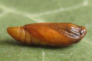 Die Raupen überwintern. Das im Frühling angefertigte Verpuppungsgespinst ist recht zäh und eng. Die Tiere ziehen Pflanzenteile (im konkreten Fall Moos) zusammen und verspinnen sie zu einem länglichen, ca. 10 mm langen Gespinst. Vor der Verpuppung wurden die Raupen (soweit gemessen) ca. 13 mm lang.