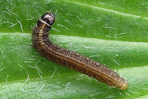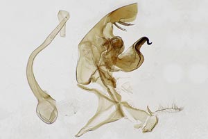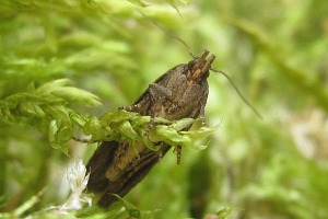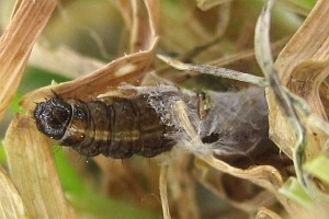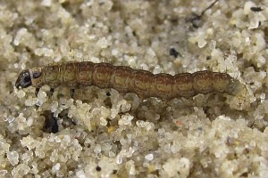 Snellen (1882: 644) hatte die Raupe beschrieben und dazu eigene Beobachtungen mitgeteilt: "Ik vond haar in gangen van spinsel, op den grond tusschen gras, waarvan zij de halmen von onderen afknaagden. Waarschijnlijk leeft zij ook op dezelfde wijze von op den grond groijende mossen." Aber kann das sein? Gras und Moose?
