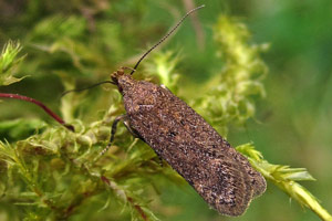 Karsholt & Rutten (2005: 85) bemerken in ihrer Einführung zur Gattung Bryotropha: "Until a few years ago the early stages and the life history of most species of Bryotropha were unknown, and most of what is known to date about this subject stems from recent studies by Heckford and Sterling (Heckford 1999, Sterling & Heckford 2001, Heckford & Sterling 2002, 2003). We refer to their detailed descriptions and information, which we do not repeat in full here. All Bryotropha seem to feed on mosses (Bryophyta). They are more or less polyphagous on these and the menu of some also includes grasses. A couple of unconfirmed records also give Caryophyllaceae (see under B. italica and B. figulella) and Salicaceae (see under B. dryadella) as food plants. The larva lives in a silken tube spun to the host plant. These tubes are usually flimsy. Plant material and sand are often incorporated but not frass. When larvae live in flat, stone-growing mosses, the tubes can be visible as pale lines within the moss. In most cases, however, the tubes are well hidden and only visible after carefully parting the host plants. The larvae of most species are best searched for in the morning when the very fine strands of silk emanating from the larval tube, are covered with dewdrops and show up like minute spiders’ webs. Without dewdrops these strands are virtually invisible. The effect of early morning dew can be mimicked by using a pressurized water sprayer to deliver a fine mist to the moss (Heckford & Sterling 2002). Bryotropha apparently overwinter in the larval stage." Karsholt & Rutten (2005: 114) schreiben dann konkret zu Bryotropha terrella: "The biology has been described in detail by Heckford (1999) and Sterling & Heckford (2001). The larva has a black head, the prothoracic plate yellow-brown with large black areas and the body dull red-dish brown with a rather indistinct dorsal line. The caterpillar, which is figured in colour by Heckford (1999), lives in a silken gallery between the mosses Rhytidiadelphus squarrosus (Hedw.), Syntrichia ruraliformis (Besch.), Hypnum jutlandicum (Holmen & E. Warncke), Calliergonella cuspidata (Hedw.) and the grass Agrostis capillaris L. and has been observed to eat both mosses and grasses (Snellen 1882: 643, Sterling & Heckford 2001: 146-147)."