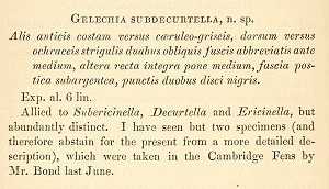 • Erstbeschreibung: Stainton, H. T. (1859): Lepidoptera. New British Species in 1858. — The Entomologist's Annual for MDCCCLIX: 145-157 + frontispiece. London (John van Voorst).