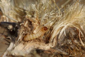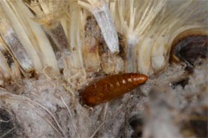 Die Raupen leben in den Blütenköpfen und ernähren sich dort von "Fruchtboden und Samen" (Schütze 1931).