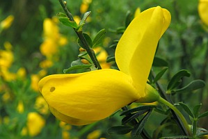 • [Fabaceae:] Cytisus scoparius [= Sarothamnus scoparius, Spartium scoparium] (Besenginster)