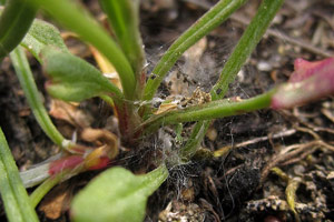 4-7: Wohngespinste an Pflanzenbasis, Deutschland, Niedersachsen, Hannover, 50 m, Kugelfangtrift (bodensaurer Magerrasen), an Rumex acetosella, 24. Mai 2019 (det. & Freilandfotos: Tina Schulz)Forum
