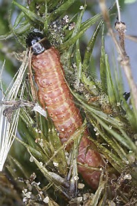 1: Deutschland, Sachsen, Noitzscher Heide bei Lindenhain, Raupenfund am 2. Juni 2011 (leg., cult., det. & Foto am 12. Juni 2011: Heidrun Melzer)