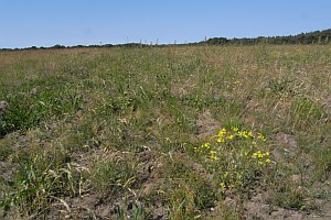 2: Brachfläche mit Beständen der Raupennahrungspflanze Kleiner Sauerampfer (Rumex acetosella), Raupenfundort: Deutschland, Sachsen, Noitzscher Heide bei Lindenhain, 2. Juni 2011 (Foto: Heidrun Melzer)