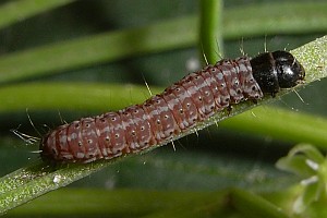 9: L1 (Eiraupe): Deutschland, Niedersachsen, Hannover, 50 m, Kugelfangtrift (bodensaurer Magerrasen), Eier an Filago arvensis (Acker-Filzkraut) 27. Juni 2019, Zuchtfoto 1. Juli 2019 (cult. & fot.: Tina Schulz), det. durch Barcoding (TLMF Lep 26244)Forum