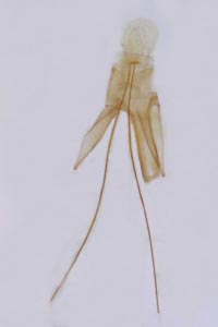Nel, Varenne & Peslier (2020: 68) beschrieben ihre "Ancylis cerdanica" nach einem einzigen ♀, ohne eine DNA-Untersuchung durchzuführen. Hätte man mit der Veröffentlichung der Beschreibung noch gewartet, bis ein Barcoding-Ergebnis vorlag, wäre uns ein Synonym erspart geblieben. Jedenfalls fällt das Taxon genetisch voll und ganz in die Variationsbreite von C. distinctella und größere Abweichungen in Teilen des Genitals deuten hier eher auf einen (genetisch bedingten?) Genitaldefekt hin als auf eine eigenständige Art. Doch innerhalb C. distinctella scheint es tatsächlich 2 Cluster zu geben, die es Wert wären, genauer studiert zu werden. Huemer & van Nieukerken (2021: 323) erläutern zu C. cerdanica: "The holotype shows some unique features in genitalia, particularly the short and triangular antrum and the digitate distal part of the apophyses anteriores. However, the fully recovered DNA barcode despite not being barcode compliant, clearly indicates possible conspecifity with C. distinctella (Zeller, 1839). This species shows some genetic variation represented by a barcode cluster occurring in Finland and a widespread cluster in Europe with considerable genetic variation of 2.15% within this BIN (Huemer et al. 2020). The holotype of C. cerdanica nests in a geographically widespread cluster with only ca. 0.6% divergence from the nearest neighbour. Furthermore the female genitalia of both taxa are at least partially similar in the broad apophyses anteriores. Curiously, Nel et al. (2020) described the ductus and corpus bursae of C. cerdanica as transparent whereas they also stated that these structures were not found during preparation. Whereas the entrance of the ductus bursae is always visible at the anterior end of the antrum in Chionodes, it seems to be completely reduced in this specimen. Therefore we believe that the specimen is likely the result of a rare mutation or of a developmental anomaly that led to genitalia malformation." Sie sehen darin eine Parallele zum Fall "Mesapamea remmi".