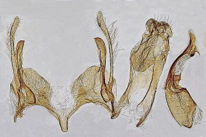 1-3: Genitalpräparat des als Diagnosebild 1 abgebildeten ♀, Deutschland, Baden-Württemberg, 78176 Blumberg, Ortsrandlage, Südhang, in Waldnähe (Buchen-Mischwald, Waldrand mit anschließendem Trespen-Halbtrockenrasen auf Kalk), 720 m, am Licht, 6. Juli 2017 (leg., gen. det., präp. & Foto: Hans-Peter Deuring)Forum