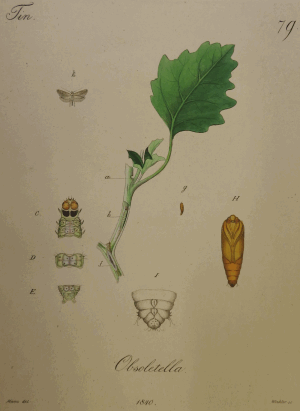 Fischer v. Röslerstamm (1840: 225) konnte schon in seiner Erstbeschreibung berichten: "Obsoletella, die ich erst in Wien kennen lernte ist sehr gemein und würde die allergemeinste Schabe seyn, wenn nicht ihre Raupe, die hier in einer wahren Unzahl vom Frühjahre bis in den Herbst vorhanden ist, so verborgen sie auch lebt, von einer kleinen, gelben Ameisen - und einer Schlupfwespenart grösstentheils vertilgt würde. Sie ist so häufig, dass ich in einer einzigen Meldenpflanze 36 Raupen zählte, und selten eine dieser, hier so häufigen Pflanzen fand, welche nur einige oder gar keine Raupe beherbergte. Es ist aber auffallend, dass man diese Raupenart stets nur in den Pflanzen, die nahe an Häusern, Mauern und Gartenplanken stehen, niemals aber in jenen findet, welche in einiger Ferne von der Stadt im Freien wachsen. Die Raupe kommt vom Mai an bis in den September in verschiedenem Alter vor, zu gleicher Zeit mit Puppen und Schmetterlingen, daher wohl mehrere Generationen anzunehmen seyn mögen. Sie lebt nicht von den Blättern, sondern im Marke der Stengel der geschlitzten Meldte (Atriplex laciniata) und, etwas seltener, in allen Arten des Gänsefusses (Chenopodium). [...]"