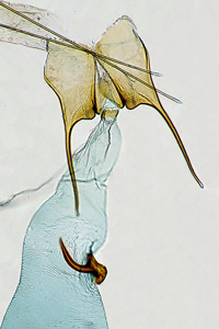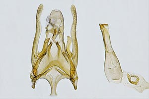 1: ♂, Spanien, Andalusien, Almeria, Cabo de Gata, Dünen, 17 m, 36.826660,-2.291976, 20. Juli 2021, am Licht (leg., gen.det. & fot.: Friedmar Graf), Referenr Huemer et. al. (2010), ♂ Gen. Fig. 95Forum