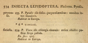 1: Linnaeus (1758: 534) [nach Copyright-freiem Scan auf www.biodiversitylibrary.org]