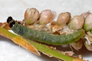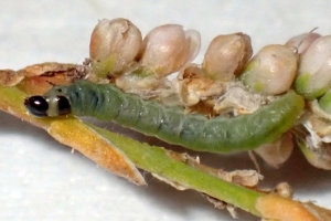 Bidzilya & Karsholt (2015) schreiben: "The larvae feed between spun together shoots of Tamarix gallica L. and probably other Tamarix species (Tamaricaceae)".