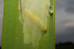 1-2: nach Verlassen der Mine, Deutschland, Sachsen, Elsteraue südwestlich von Leipzig, Elsterflutgraben, an Rohrglanzgras (Phalaris arundinacea), leg. 19. Juni 2009, 23. Juni 2009 (Fotos: Heidrun Melzer), cult. & det. Heidrun MelzerForum