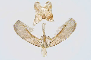 1: ♂, Schweiz, Bern, Vauffelin, 700 m, 5. Mai 2014 (leg., gen. det. [GP Nr. 2015-102] & Foto: Rudolf Bryner), Referenz Traugott-Olsen & Schmidt Nielsen (1977)