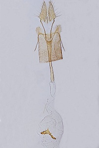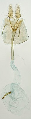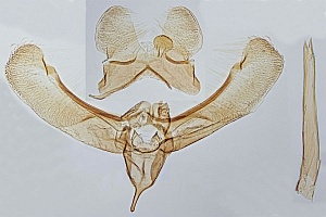 Das Taxon "Elachista bidentata" wurde von Varenne & Nel (2019) nach einem einzigen Männchen aus Auris-en-Oisans in den französischen Alpen beschrieben. Die Autoren betonen die äußere und genitalmorphologische Ähnlichkeit zu Elachista orstadii, glauben dann aber doch einige zuverlässige Unterschiede bei Uncus und insbesondere Aedeagus gefunden zu haben. Hier schrieb ich am 21. Mai 2019 auf unserer neuen Seite zur Art: "Ohne Hinweis auf die Raupennahrung, ohne Fund weiterer entsprechender Exemplare, ohne Erläuterung der Variationsbreite der männlichen Genitalien der Vergleichsart und ganz ohne genetische Absicherung erscheint mir die Artbeschreibung zumindest voreilig." Huemer & van Nieukerken (2021: 327-328) legten das zu erwartbare Ergebnis vor: "Elachista bidentata was described from a male holotype and separated from E. orstadii on subtle differences in genitalia (Varenne & Nel 2019). However, the DNA barcode sequence of the holotype fully corresponds with the latter species and the alleged genitalia differences are within the intraspecific variation of large samples from Europe and Siberia (Kaila in litt.). We therefore synonymize E. bidentata with E. orstadii."