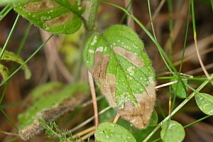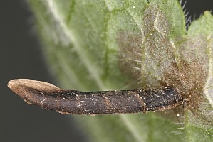 Nach Emmet et al. (1996) lebt die Art an einer ganzen Reihe von Lippenblütlern wie Bergminze (Calamintha sp.), Wirbeldost (Clinopodium vulgare), Gundermann (Glechoma hederacea), Minzen (Mentha spp.), Salbei (Salvia horminoides), Gewöhnliche Braunelle (Prunella vulgaris) und Dost (Origanum vulgare). Vom europäischen Festland werden auch Wolfstrapp (Lycopus europaeus), Katzenminze (Nepeta sp.), Ziest (Stachys sp.) und Thymian (Thymus sp.) genannt. Auf [Bladmineerders.nl] ist zu lesen: "Agastache foeniculum; Clinopodium vulgare; Glechoma hederacea; Lycopus europaeus; Melissa officinalis; Melittis melissophyllum; Mentha aquatica, arvensis; Nepeta cataria; Orignanum vulgare; Prunella vulgaris; Salvia pratensis, verbenaca, verticillata; Satureja; Stachys, Thymus."