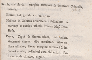 - Erstbeschreibung: Fabricius, J. C. (1794): Entomologia systematica emendata et aucta. Secundum classes, ordines, genera, species adjectis synonimis, locis, observationibus, descriptionibus 3 (2): 1-349. Hafniae (C. G. Proft, Fil. et Soc.). — Digitalisat der Bayerischen Staatsbibliothek München: [337].