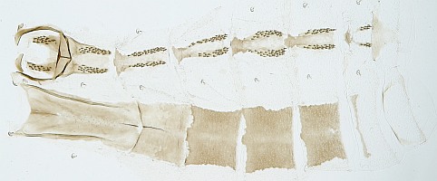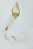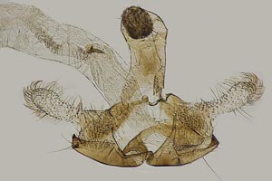 1-4: ♂, Österreich, Wien, Prater, 1859, ohne weitere Angaben (Genitalpräparation & Mikro-Fotos: Peter Buchner, coll. NHMW mit Genitalpräparat-Nummer MV17781), [1-2] herkömmliche Einbettung (Valven und Phallus nur in der kleinen Version im gleichen Maßstab!), [3] Foto der nicht eingebetteten Genitalarmatur, v.a. zwecks Darstellung des Phallus-Apodems, [4] Abdomenhülle