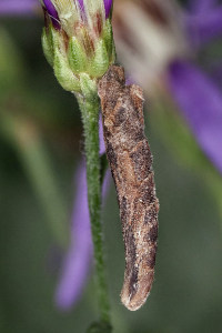 Die Raupennahrung dieser Art war zunächst noch unbekannt! Buschmann et al. (2014) vermuteten, dass es sich bei der Nahrungspflanze um eine Aster-Art handeln müsse, vielleicht die an einem Standort reichlich vorhandene Aster sedifolius (jetzt Galatella sedifolia). Genau dies konnten Takács et al. (2022) dann durch Raupenfunde in Ungarn und Rumänien mit anschließender Zucht bzw. Barcoding bestätigen.