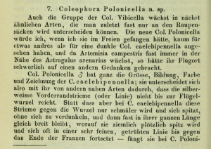 Šulcs & Savenkov (2014) melden den Erstfund für Lettland: "Province(s): VTT. Notes: This European rarity (Fig. 3) was found on the dunes of the Latvian west coast in the vicinity of VTT Užava (Fig. 4). It was first discovered as full-grown larvae on Astragalus arenarius (Figs 5 & 6). On 09.07.2011, the species was collected in numbers coming to light together with Coleophora onobrychiella Zeller 1849 (IŠ). In the Baltic countries, C. polonicella was only reported from Lithuania by P. Ivinskis (2004), who referred this information to Prüffer (1947). Because these data cannot be verified and there are no new records, we consider the found population in Užava the first approved finding of this species in any Baltic country. The only known European countries of verified occurrence for C. polonicella are Poland and Romania."