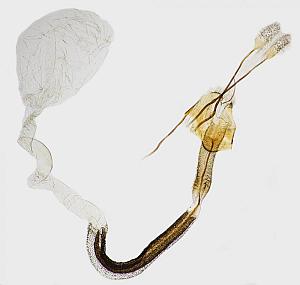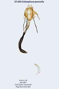 Müller-Rutz (1927: 523) beschreibt nach C. pennella eine weitere Art, die mittlerweile ebenfalls synonymisiert wurde: C. onosmella Brahm. - II, 515 - III, 517 - IV, 247. Törbel, 28.6.24 ein Ex. (M.-R.). * C. nervosella n. sp. Exp. ♀ 20 mm. Der C. onosmella sehr ähnlich, etwas grösser, Vfl. noch gestreckter, die Linien noch blasser. Die ebenfalls ähnliche auricella F. unterscheidet sich durch den Fühlerpinsel leicht. Von onosmella an dem längern, dünnern, unten feiner behaarten Wurzelglied der Fühler zu trennen. Auch die Palpen sind schlanker als dort, das Mittelglied mit sehr kurzem Busch, das Endglied wenig kürzer als dieses. Der Sack von demjenigen der onosmella, wie von allen zur Abteilung L Hein, gehörenden völlig verschieden. Derselbe ist zylindrisch, dünn, bei 15—17 mm Länge nur 2,5 mm dick, gelbgrau, zart querfilzig. Afterklappe dreiteilig, Mund 4. Die Raupe lebt bis Juni an Artemisia campestris. Den auffallenden Röhrensack fand ich schon früher bei Törbel, ohne einen Falter zu erhalten. Anfang Juni 1926 fand ich drei Säcke bei Baltschieder im Rhonetal und erhielt am 6.7. einen ♀ Falter. Nur durch die Kenntnis des Sackes wage ich die Aufstellung dieser neuen Art (M.-R.)“. Sollte C. pennella tatsächlich auch an Artemisia campestris leben, wäre es nicht verwunderlich, dass hier ein völlig anderer Sackbau die Folge wäre - die typischen Echium-Haare für den Sackbau würden ja fehlen. Ich sehe hier vor allem zwei Möglichkeiten: Es kam zu einer Verwechslung der ex-larva-Falter bei der Zucht oder aber C. nervosella wurde zu Unrecht mit C. pennella synonymisiert. Erst mit weitem Abstand sehe ich dann doch auch die Möglichkeit von Xenophagie.