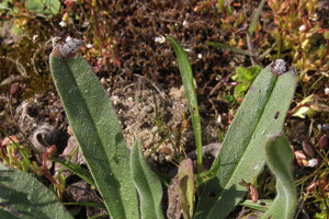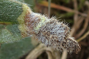 Bemerkenswert ist aber noch die Angabe zu Hieracium, die auf Treitschke (1833: 219-220) und dessen Beschreibung der Ornix struthionipennella zurückgeht. Dort heißt es: "Herr von Tischer beschrieb die Raupe. "Sie ist eine Sackträgerin und wird Ende Mey gefunden. Der Sack ist länglich, oval, seidenartig rauh, silberfarbig, und hat daher die größte Aehnlichkeit mit einem Weidenkätzchen. Die Säcke hängen an den Stengeln verschiedener Pflanzen, wodurch man verleitet werden könnte, alle diese Pflanzen für ihre Nahrung zu halten, welches doch nicht der Fall ist. Ihre wirkliche Futterpflanze, wobey ich das Räupchen im Freyen beobachtet und womit ich mehrere erzogen habe, ist das Mäuseöhrchen, (Hieracium pilosella.)" Die Beschreibung des Kokons passt, aber Hieracium pilosella als Raupennahrungspflanze ist trotzdem - ja gerade deswegen - falsch.