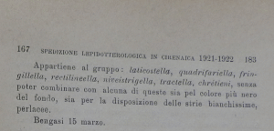 - Beschreibung als Coleophora latistriella: Turati, E. (1924): Spedizione lepidotterologica in Cirenaica 1921 - 1922. — Atti della Società Italiana di Scienze Naturali 63: 21-191, pl. I-VI. Pavia.[Digitalisat auf biodiversitylibrary.org]
