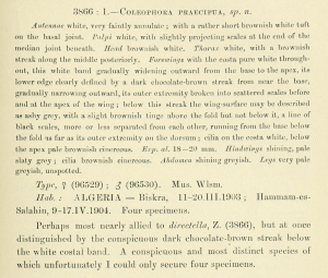 Walsingham (1907: 129) listet: "Type, (96530). Mus. Wlsm. Hab.: ALGERIA - Biskra, 11-20.III.1903; Hammam-es-Salahin, 9-17.IV.1904. Four specimens."