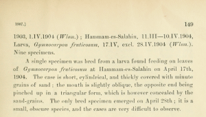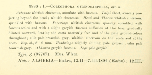- Erstbeschreibung: Walsingham (1907): Algerian Microlepidoptera. — The Entomologist's Monthly Magazine 43 (= second series 18): 6-10, 55-58, 125-129, 147-154, 187-195. London (Gurney & Jackson).