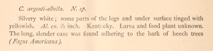 Anscheinend noch unbekannt! Die Originalbeschreibung von Chambers (1874: 128) enthält nur den vagen Hinweis “The long, slender case was found adhering to the bark of beech trees (Fagus Americana).”