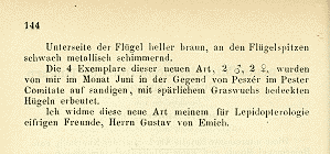 Anker (1870: 144): „Ich widme diese neue Art meinem für Lepidopterologie eifrigen Freunde, Herrn Gustav von Emich.“
