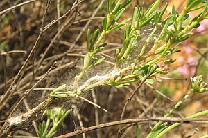 Schon in der Erstbeschreibung von Millière (1861) wird über den Fund zahlreicher Raupen an Dorycnium suffruticosum berichtet. Bengtsson (1997: 75) berichtet über einen Raupenfund von M. Corley an Dorycnium hirsutum.