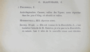 Nach Sattler & Tremewan (1973: 250-251) publizierte Millière den dritten Teil seines « Catalogue raisonné des lépidoptères des Alpes-Maritimes » zum einen separat und zum anderem in den « Mémoires de la Société des sciences naturelles et historiques des lettres & des beaux-arts de Cannes et de l'arondissement de Grasse ». Die separate Publikation sei früher im Jahr 1876 erfolgt, doch stimmten beide Versionen im Druck bis auf die Pagination und Signaturen überein: “The two issues agree except in pagination and signatures, and appear to have been printed from the same type-set.”