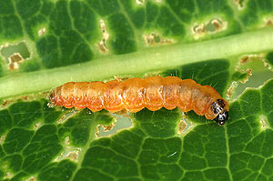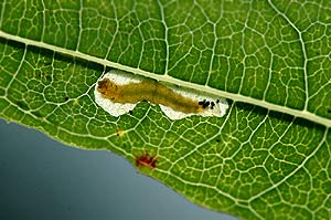 2: erwachsene Raupe nach Verlassen der Mine, Schweiz, Bern, Sonvillier, 940 m, montaner Nadelwald in Schattenhanglage, an Epilobium angustifolium, 11. August 2007 (leg., cult., det. und Foto: Rudolf Bryner)Forum