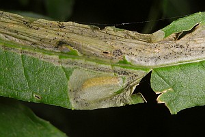 3-4: erwachsene Raupe beim Fressen in der Mine und nach Verlassen der Mine: Deutschland, Sachsen, Noitzscher Heide bei Lindenhayn, an schmalblättrigem Weidenröschen (Epilobium angustifolium), 9. Oktober 2010 (leg., cult., det. & Fotos am 10. bzw. 13. Oktober 2010: Heidrun Melzer)Forum