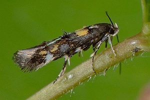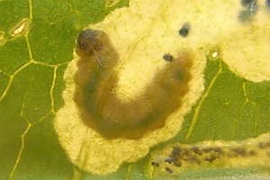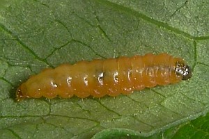 1: halbwüchsige Raupe, aus Mine an Epilobium angustifolium herauspräpariert: Schweiz, Bern, Orvin, 820 m, 10. Juli 2007 (Aufnahme: Rudolf Bryner), det. Rudolf Bryner