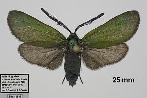 Hinweis: Hervorragende Genitalabbildungen jeweils mehrerer Präparate beiderlei Geschlechter finden sich im "Bildatlas der Rot- und Grünwidderchen des Alpenraums" von Guenin (2023), der mittlerweile auch zum freien [Download auf e-periodica.ch] zur Verfügung steht.