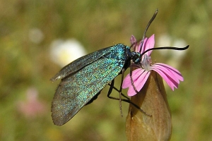 Unten: Jordanita globulariae. Schweiz, Bern, Vauffelin, 780 m; 25. Juni 1989 (leg., det. & phot. Rudolf Bryner) [Forum]