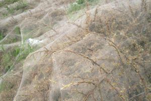 7: Gradation auf hauptsächlich Zwergmispel (Cotoneaster sp.) zusammen mit Scythropia crataegella: Deutschland, Niedersachsen, Region Hannover, Seelze, 50 m, Hannoversche Straße, Einkaufsmeile nahe großflächigen Gleisanlagen, 11. Mai 2024 (Foto: Tina Schulz)Forum